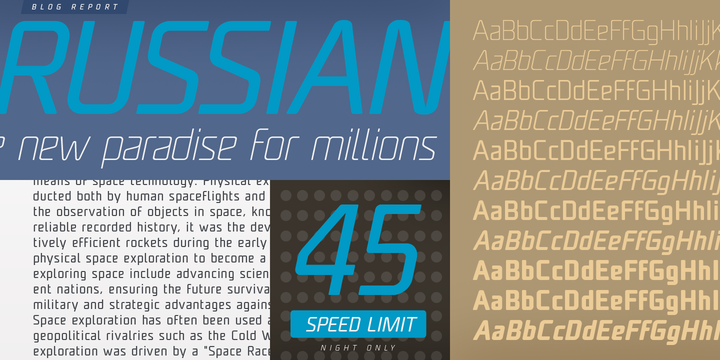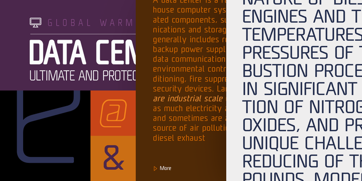 This font has been especially designed for Mostardesign Studio by Olivier Gourvat. Created in 2010, this font family has been designed to serve sectors like financial services, modern industries, business and many more activities who needs a modern aspect in their communication. Its square proportions make the design very readable at a wide range of sizes.
