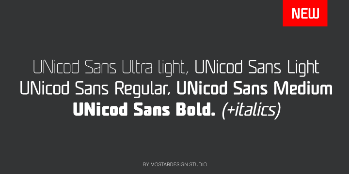 UNicod Sans is available in 5 weights with corresponding italics and 2 styles.