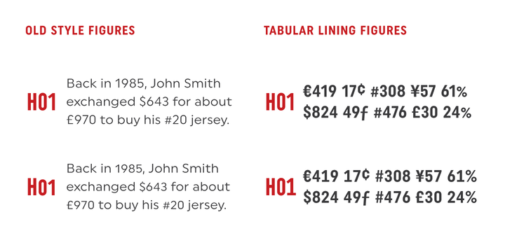 and the O of the Extra Condensed width is based on two circles stacked with straight sides as well, and all other characters are derived from this initial concept. This unique idea creates a remarkably fresh type family that bridges the gap between circular geometric typefaces and condensed straight-sided typefaces. Uniform also includes many opentype features like Old Style Figures, Tabular Lining Figures, Alternate characters, Ligatures and more. Moreā¦