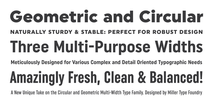 Uniform is a multi-width geometric type family designed around the circle. The O of the Regular width is based on a circle, the O of the Condensed width is based on 1.5 circles stacked (with straight sides)