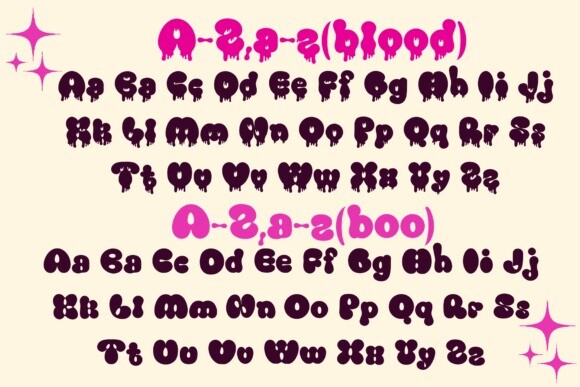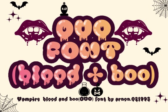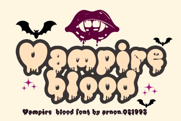 Vampire Blood Font is a playful and spooky display font that brings a ghoulish charm to your designs. The letters are filled with bubbly shapes, and each character has dripping blood, giving it a chilling and fun vibe. Perfect for Halloween-themed projects, horror parties, or anything that needs a touch of vampire-inspired excitement!