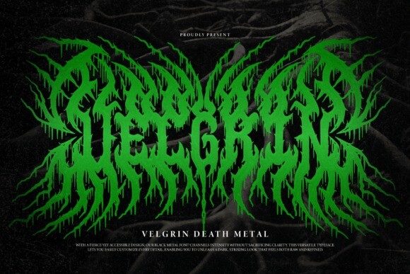 Velgrin Font is a bold, sharp-edged font perfect for death metal designs. Its letters are jagged and intense, giving a dark, powerful look. Velgrin is great for band logos, album covers, or any artwork needing a heavy, rebellious style.