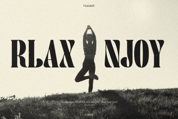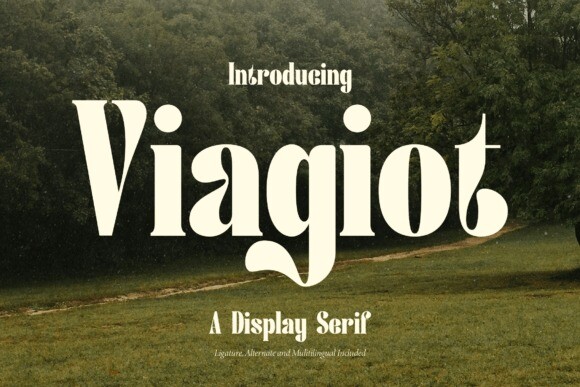 Viagiot Font is a stylish display serif font with elegant, bold letterforms. It has a modern yet classic feel, perfect for eye-catching titles, headlines, or logos. Its unique design makes it stand out and adds personality to any project.