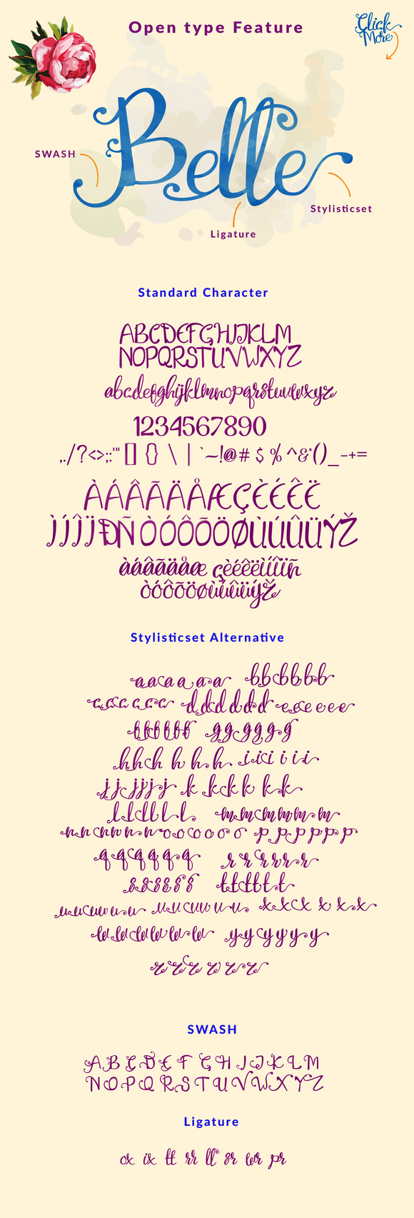 - Initial and Terminal Forms that setting up in Contextual swashes ( This fonts is automatically setting the initial and terminal forms as default, and if you want to turn off the initial and terminal just click the button of the contextual swashes, it more easier than opening the glyph tab)