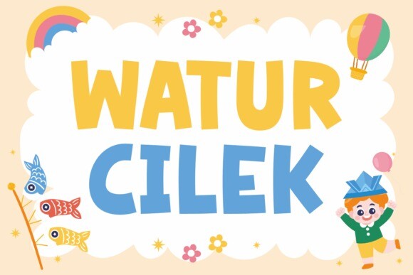 Watur Cilek Font is a fun and friendly display font. Whether you are using it for cartoon-related designs, children’s games, quotes, titles, brand names, book covers, posters, or just any creation that requires a touch of joy, this font is a great choice.