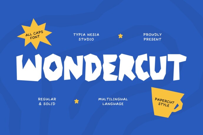 Wondercut is a Papercut / Paper Cutout Style Font that brings the charm of handcrafted paper art to your designs. Its unique cut-out aesthetic and playful irregularity make it stand out, delivering a natural and artistic feel that mimics real paper crafting, Ideal for DIY projects, children’s books, creative posters, greeting cards, scrapbooking, branding, packaging, game design, advertising campaigns, invitations, social media graphics, and any project that requires a unique and artistic touch.