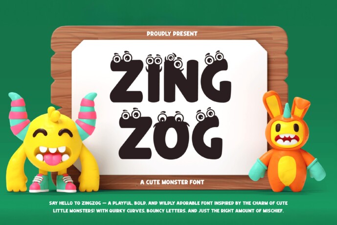 Zingzog is a cute monster font bursting with playful charm and cheerful energy. Its bold shapes, lively baseline, and fun monster-like details make it perfect for kids’ projects, birthday invitations, cartoons, game titles, and any design that needs a splash of imagination. Each letter is full of personality, bringing joy and a mischievous vibe to every creation.